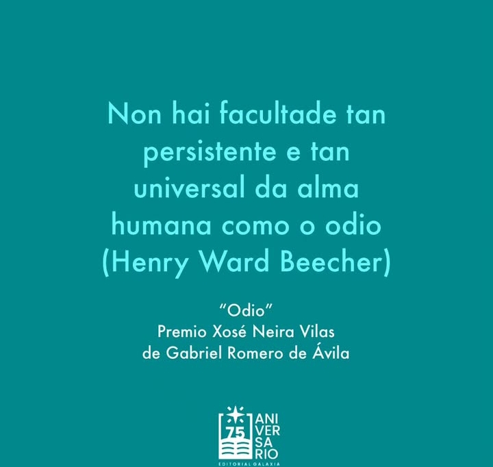 Nunca crin que puidese levarme o galardón, pero de valentes ―e de tolos― está chea a historia, de maneira que me lancei sen ―demasiado― medo e presentei unha novela na que cría: Odio, unha historia de droides, sereas, gólems e influencers que queren desatar unha guerra. Unha historia cyberpunk herdeira dos clásicos traballos de William Gibson, Philip K. Dick, Katsuhiro Otomo e Richard Morgan, unha aventura que lembra aos relatos pulp de Robert E. Howard e ás macarradas ochenteras de Frank Miller. E gañou. Un xurado experto declarou por unanimidade que esa era a mellor novela de entre a presentadas, a que máis correspondía ao espírito de Neira Vilas e a que máis tiña que ver a luz. E eu non podo sentirme máis honrado na vida.
