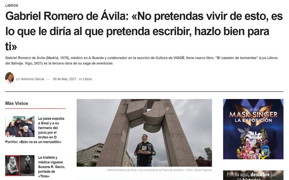 Unos días después, David Augusto escribió una magnífica entrevista para Vigo É, una delicia de artículo que repasa mi historia personal y profesional, además de muchas opiniones literarias. Puedes leerla completa aquí.