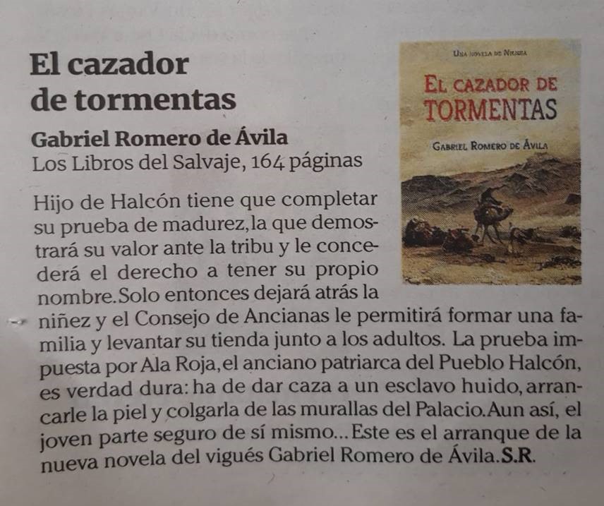 El 6 de junio la novela llegó a Faro de Vigo, con un artículo obra de Salvador Rodríguez que puedes consultar en este enlace.