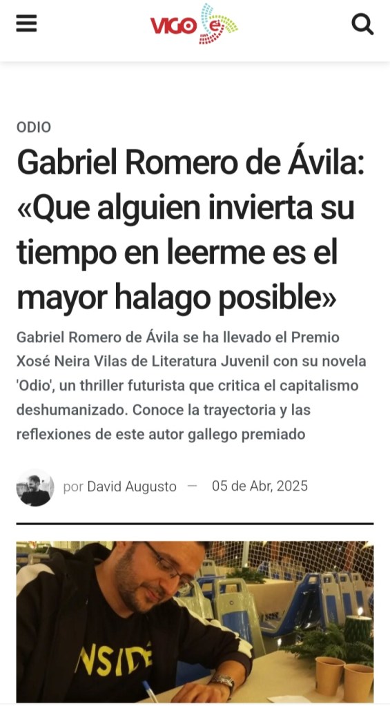 Con motivo de la publicación de Odio, en Nós Diario me hicieron una entrevista preciosa, a la que puedes acceder con este enlace.