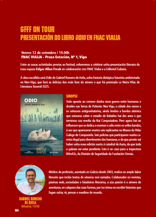 A raíz de la presentación de la novela en FNAC Vigo, como parte de los eventos previos al Galician Freaky Film Festival (GFFF), apareció publicada esta reseña tan maravillosa en Vigo É, a la que puedes acceder a través de este enlace.