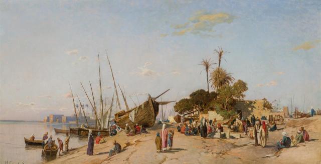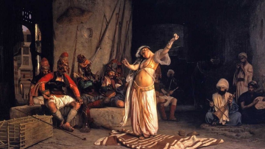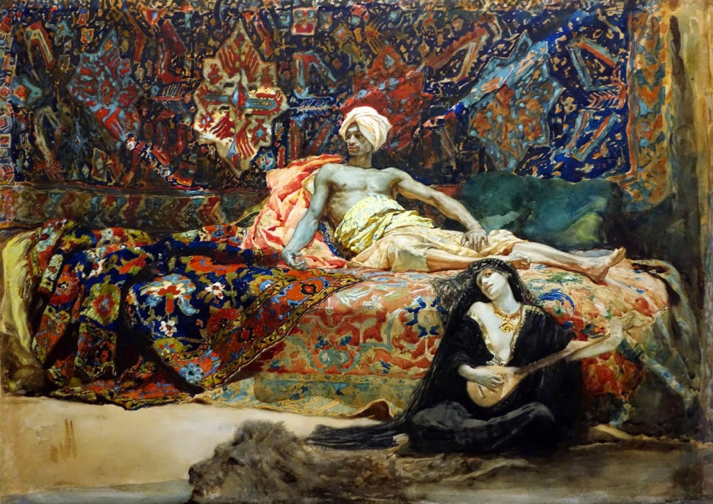 El orientalismo fue un movimiento artístico presente en la literatura, arquitectura, decoración y pintura fundamentalmente a partir del siglo XIX. Se caracteriza por las localizaciones y ambientes exóticos, que sorprenden al espectador o lector occidental. Escenas del desierto, palacios árabes, mercados al aire libre, baños turcos, pirámides o harenes son lugares frecuentes para estos artistas, muchos de ellos de origen europeo y enamorados de los parajes que habían conocido en Oriente Próximo o el norte de África. Nómadas tuaregs, esclavistas árabes o guardias eunucos constituían algunos de los personajes más habituales.