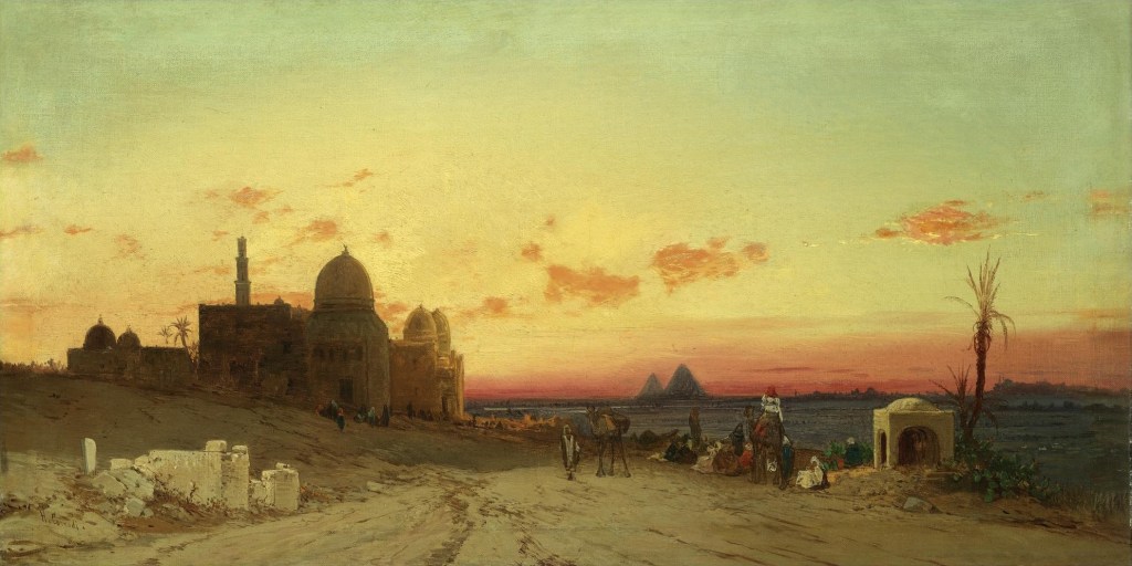 Algo así le ocurrió a Hermann Corrodi, el autor de mi portada, que ya había conocido toda Europa cuando recibió el encargo de la familia real británica de visitar Oriente y reflejarlo en sus pinturas. Había nacido en 1844 en Frascati, Roma —otros afirman que en Zurich—, hijo del pintor suizo Solomon Corrodi. Estudió arte en Ginebra, en la Accademia di San Luca de Roma, y después en París. Adquirió fama como pintor de paisajes, por influencia de su padre, y esto le permitió entablar relación con la mayoría de familias reales europeas de su tiempo. Después de eso, se dedicó a viajar por Oriente y su estilo cambió por completo. Sus cuadros se llenaron de tormentas de arena, caravanas de dromedarios, mezquitas y pirámides. Revolucionó el mercado europeo con el exotismo de sus propuestas y obtuvo numerosos premios. Dio clase en la Accademia di San Luca y esa institución lo nombró académico emérito. Murió en Roma en 1905, dejando atrás una obra amplia, rompedora y muy valorada por los coleccionistas de arte.