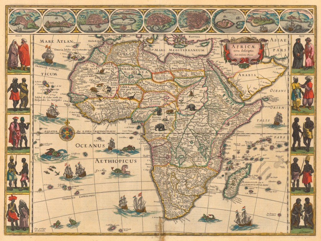 La cartografía siguió avanzando con el paso de los siglos, pero el conocimiento acerca del continente africano fue muy escaso prácticamente hasta el siglo XIX. Salvo las zonas costeras, que habían sido recorridas por navegantes desde las primeras civilizaciones, el interior de África permaneció inexplorado hasta fechas muy recientes. Los mapas reflejaban áreas desconocidas, que solían representarse con grandes animales o pobladores de piel negra, ante el desconocimiento de lo que realmente hubiera allí. Solo con las grandes exploraciones y la colonización europea se pudieron trazar mapas de lugares tan emblemáticos como las fuentes del Nilo o las montañas de la Luna, pero a cambio eso trajo consigo terribles masacres nunca vistas, como la que sucedió en el Congo.